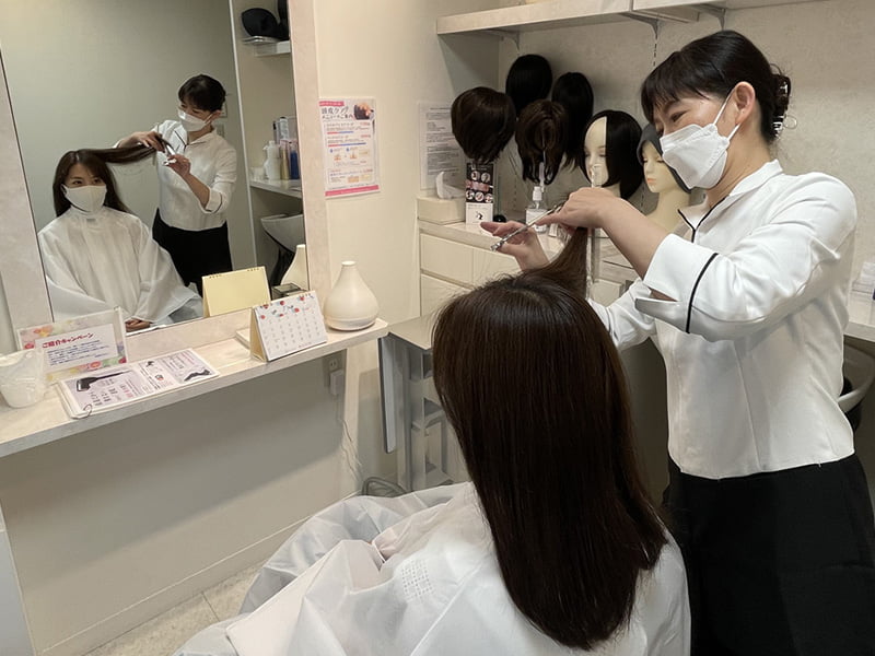スタッフさんには、治療前のカットについてや治療中のウィッグのサイズ調整のこと、ウィッグのお手入れの仕方など、不安に思っていたことをすべて相談出来て、親身に応えてくださったので、安心して治療にも専念できるなと感じました。